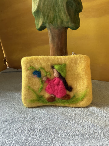 These smaller felted wallets with a needle felted picture will make a great little present for a child.. The zip will keep all the goodies safe and secure!